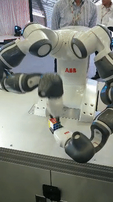 No.3 我具有高精度和高可靠性,我是双臂14轴机器人,手臂可实现±230°旋转,展开双臂可达1.6m,最高运行速度可达1.5m/s,重复定位精度可以精准到0.02mm,而人手基本感觉不到这种差别。