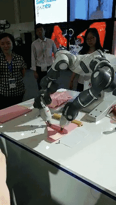 No.2 我不像机器人那样需要安全防护装置,因为我具有触觉和视觉,轻轻触碰手臂,正在操作中的我就能停下来,在实际生产中能与人协同生产共事;
