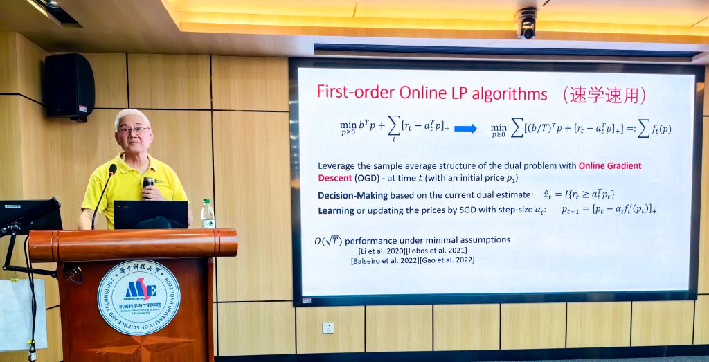 报告主要阐述了叶荫宇团队围绕在线线性规划领域的前沿研究成果。他介绍了在线与离线优化的本质差异,强调了在线优化在动态环境下实时决策的重要性和挑战性。讲座涵盖了影子价格在线学习、梯度下降算法等先进的优化理论与方法,展现了这些技术在拍卖系统、资源分配等实际场景中的广泛应用前景。
