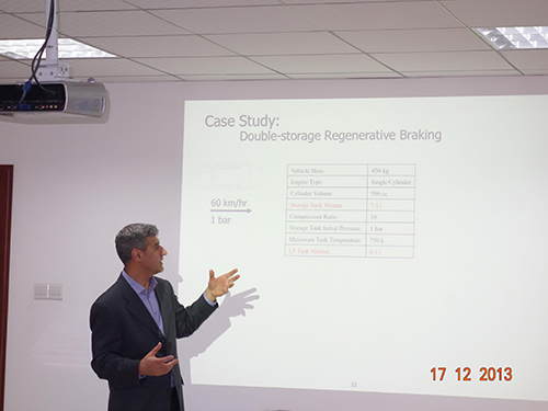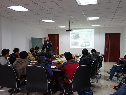 报告中,Amir Khajepour教授首先简要介绍了滑铁卢大学的相关情况,然后讨论了目前汽车领域的前沿理论与应用问题。报告重点讨论了汽车动态状态估计,车辆整体控制,纯电动、混合动力汽车优化等先进技术,介绍了最新的混合空气发动机、可变刚度空气悬架、可变气门正时系统等。最后Amir Khajepour教授、曹栋璞博士与现场师生就车辆领域的若干关键理论与技术问题进行了深入交流。