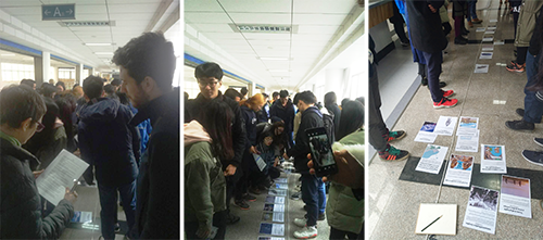 在互动环节中,她将一条46米的长绳比喻为地球的年龄(46亿年),同学们手中的卡片则记录了发生在地球上的重要事件,同学们通过仔细思考,按照事件的时间节点依次排列。该环节使同学们亲身体验并更为直观地了解,自工业革命以来,人类在短时间内对地球环境破坏之大。互动教学现场气氛十分热烈。