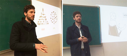 下午,Dejan Mitrovic介绍了他为非洲儿童设计的书包座椅,该书包的设计立足于非洲本土的竹纤维、绳索、棉麻等可循环绿色材料,展开后则变成一把以每个孩子的身体尺度而“量身打造”的椅子,该设计强调了环保、可持续、个性与舒适理念。此外他认为设计者思考问题时,应摒弃以自我为中心的ego模式,遵循人与自然和谐共处的eco(生态)模式,只有以自然为中心的可持续设计才能使环境、社会和经济协调,达到生态平衡。其后,他提出互联网时代催生出的新型设计形式,如可持续设计、分享经济(共享产品、共享服务)、数字化服务经济、本土经济、开源经济等对传统产品设计是革命性的颠覆,这些新兴设计形式令现场师生耳目一新。