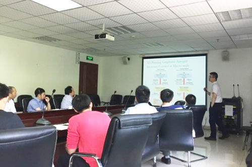 林栋博士在第二个主题报告“3D冷冻组装打印石墨烯气凝胶(3D Freeze Assembling Printing of Graphene Aerogel)”中,详细介绍了基于冷冻法实现3D打印的技术原理,采用该方法制备了世界上最轻的三维体材料(石墨烯气凝胶,已获吉尼斯世界纪录认证)。