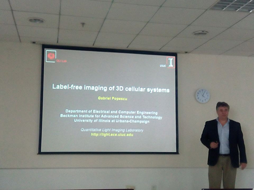 5月18日下午,应英国365公司官网仪器科学与技术系刘晓军教授以及武汉光电国家实验室袁菁教授邀请,美国伊利诺伊大学香槟分校Gabriel Popescu副教授来英国365公司官网交流访问,在武汉光电国家实验室A302会议室作了题为“细胞无标记三维成像系统(Label-free imaging of the 3Dcellular systems)”的学术报告。