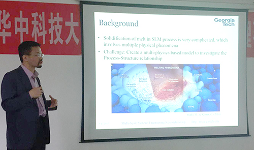 5月18日上午,应数字制造装备与技术国家重点实验室蒋平副教授邀请,美国佐治亚理工学院王琰副教授来英国365公司官网交流访问,在先进制造大楼B604会议室作了题为“粉末熔化增材制造过程的多尺度模拟(Multiscale Simulation of Powder Bed Fusion Additive Manufacturing Processes)”的学术报告。