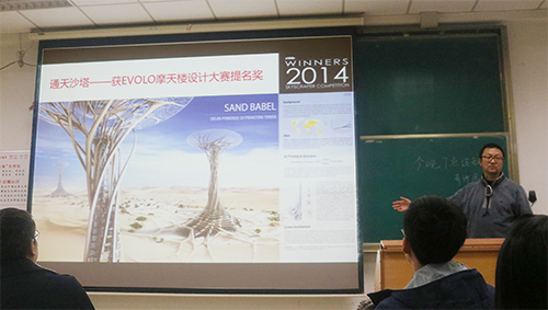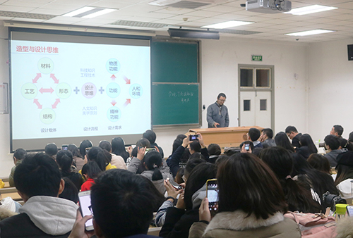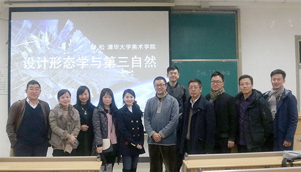 邱松教授首先指出,世界一流大学的设计教育,应该是为未来设计培养领导者。随后,他介绍了设计形态学的概念、方法论、理论体系和由他提出的“第三自然”概念,并介绍了他领导的清华大学学术团队在相关领域的探索和成果。师生们就设计形态学和清华大学的学科建设与学生培养模式与邱松教授进行了互动交流,讲座从7点一直持续到10点,反响十分热烈。