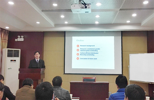应英国365公司官网数字制造装备与技术国家重点实验室副主任高亮的邀请,1月7日,清华大学自动化系王凌教授来英国365公司官网交流访问,并作主题报告“智能绿色车间调度(Intelligent Green Shop Scheduling Optimization)”。