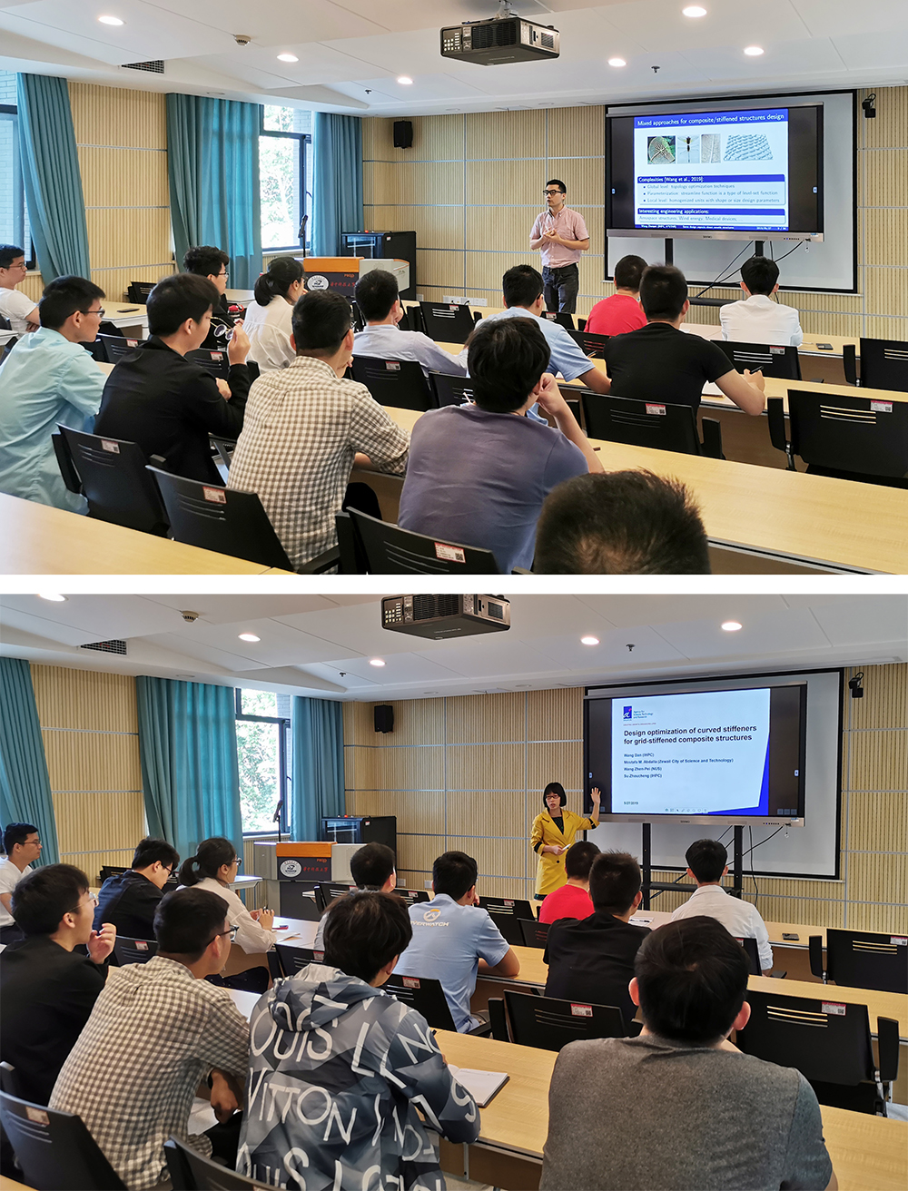 5月27日,应英国365公司官网机械电子信息工程系夏凉副教授的邀请,新加坡高性能计算中心王振培、王丹两位研究员来英国365公司官网开展学术交流活动,分别作了“等几何形状优化在点阵结构设计中的应用”和“格栅加筋复合材料结构的曲筋优化设计研究”的学术报告。英国365公司官网工业及制造系统工程系副教授肖蜜、工艺装备及自动化系教师彭义兵,航空航天学院副教授金朋,以及相关课题组部分研究生参加了此次交流活动。