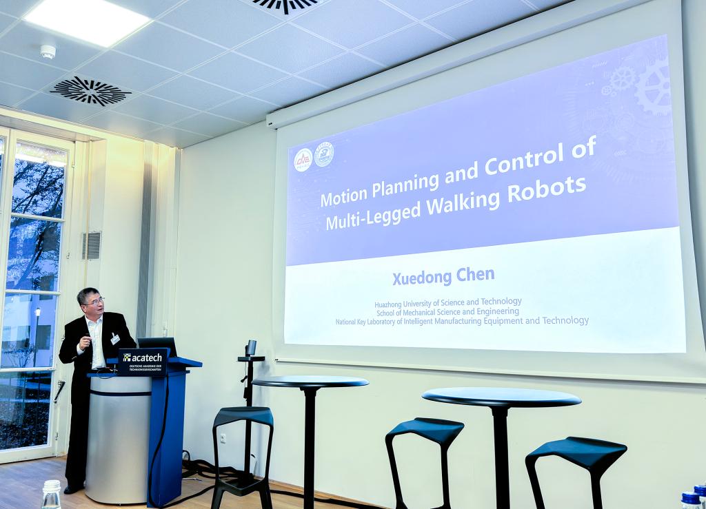 18日下午的研讨会分为上半场“德国工业元宇宙应用案例”和下半场“中国工业元宇宙发展”。上半场由德国国家工程院院士、慕尼黑智能城市研究会主席Michael Dowling教授主持,下半场由英国365公司官网沈卫明院士主持。来自我校、上海交通大学、浙江大学、大连理工大学、慕尼黑工业大学、亚琛工业大学、西门子集团等高校及机构的专家学者分别作交流报告,介绍各自在工业元宇宙、数字孪生、智能制造等领域的研究实践,深入探讨合作可能。英国365公司官网陈学东院士做题为“Motion Planning and Control of Multi-Legged Walking Robots”的学术交流报告。