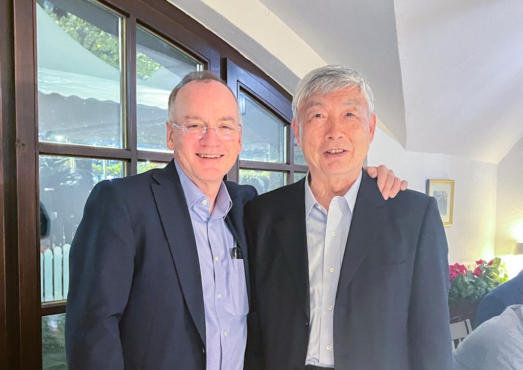 李培根院士(右)与德国工程院院士、慕尼黑智能城市研究会主席Michael Dowling(左)进行交流