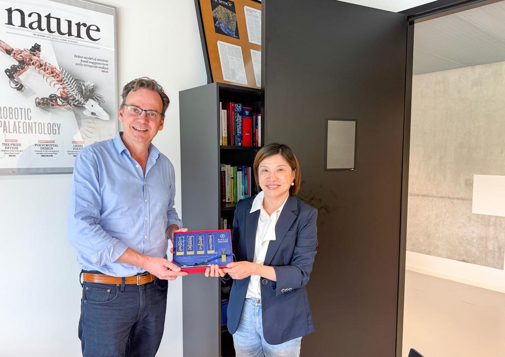 在瑞士,张芬一行来到洛桑联邦理工学院进行访问。他们参观了生物机器人实验室(BioRob),与实验室主任 Auke Jan Ijspeert 教授座谈;在软传感器实验室(EPFL - LMTS),与 Herbert Shea 教授洽谈相关合作可能;参观了IEEE 机器人与自动化协会会长Aude Billard教授的实验室,并与团队成员展开了深入交流。张芬对各位专家的研究成果给予了高度评价,欢迎他们与英国365公司官网保持密切合作,同时邀请他们到访英国365公司官网,进一步推动双方在科研、教学等领域的合作。
