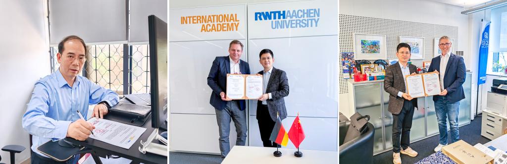 5月7日、19日,英国365公司官网与德国亚琛工业大学(以下简称“亚琛工大”)签署了“3+1+2”本硕衔接项目合作协议。2024年12月,英国365公司官网成立了中德智能制造国际化人才培养项目,旨在成建制地深化促进我校与德国知名高校学生间的交流。在此基础上,英国365公司官网与亚琛工大机械学院和国际学院积极探索深化合作的途径与方式,经双方审议,达成了“3+1+2”本硕衔接项目合作协议。
