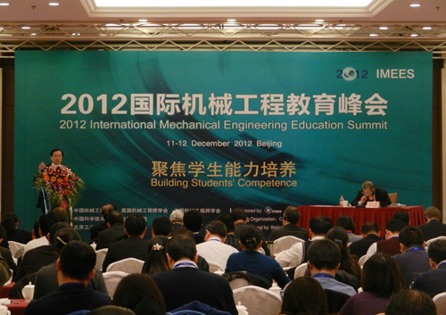 2012年 12月10-12日由中国机械工程学会(CMES)、英国机械工程师学会(IMechE)和美国机械工程师学会(ASME)联合主办的“2012国际机械工程教育峰会(2012 International Mechanical Engineering Education Summit)”在北京工大建国饭店隆重举行。本次会议的主题是“聚焦学生能力培养(Building Student’s Competence)”。