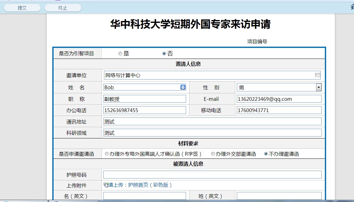 一、短期外国专家来访申请