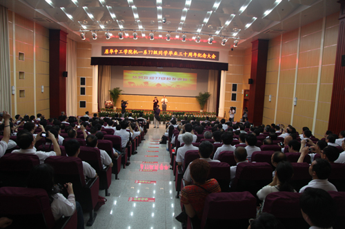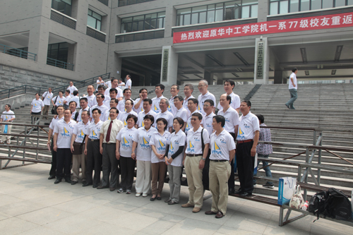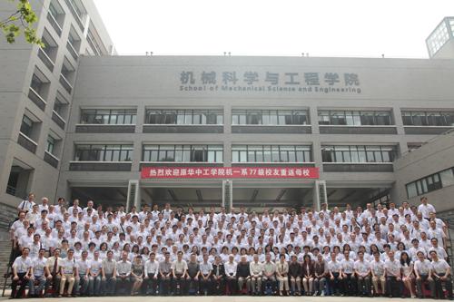 5月26日上午,原华中工学院机一系77级同学毕业三十周年纪念大会在先进制造大楼机械学院学术报告厅隆重召开。247名校友统一身着洁白的聚会T恤,欢聚一堂、畅想未来。我校副校长邵新宇教授、校友总会梁茜秘书长、校友办杨筱主任和机械学院党委书记周莉萍、院长丁汉、常务副院长史铁林、副院长汪新军和张国军、土木工程与力学学院党总支书记文锋等领导出席了纪念大会,77级当年的任课教师段正澄院士以及杨元山、钱祥生、邓星钟、孟世英、程宪平、李淑珍等老师,77级当年辅导员邓世兰、佘亮、王读平等老师也应邀出席了大会。