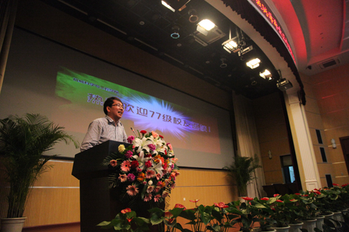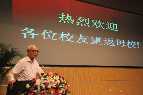 邵新宇副校长代表学校致辞。邵校长在讲话中,就“从数量增长到质量提高的转变、从工医优势到综合优势的转变、从以教师为中心的教育到以学生为中心的转变”等三个层次向校友们汇报了近年来学校的发展和思路。他在讲话中,还谈到了先进制造大楼的选址、设计以及建造过程中着眼于绿色制造、着力于人文关怀等种种考虑与举措。