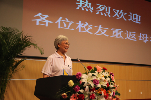 中国平安保险(集团)股份有限公司执行董事、副总经理王利平校友代表77级同学发言。她在讲话中谈到:母校和老师们的培养与鼓励是学生努力奋进的源泉与动力;我们每个人身上都背负着华工的标签,华工好,我们才好;我们好,华工才会更好;她在讲话中还号召同学们今后能更多的关注学校发展并为之做贡献。