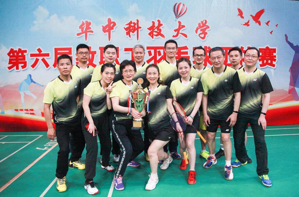 4月17至18日,“华中科技大学第六届教职工羽毛球团体赛”在光谷体育馆举行。本次比赛为混合团体赛,设男单、女双、男双(一)、混双、男双(二)五个项目。经过小组赛、淘汰赛、半决赛和决赛的激烈角逐,我院代表队(袁楚明、黄金国、贺松平、刘清华、万立、夏凉、朱文凯、刘琼、龙韧、吴仰天、周丽萍、张春江、邓亦攀)精心布阵,不畏强手,团结拼搏,最终勇夺甲组季军。