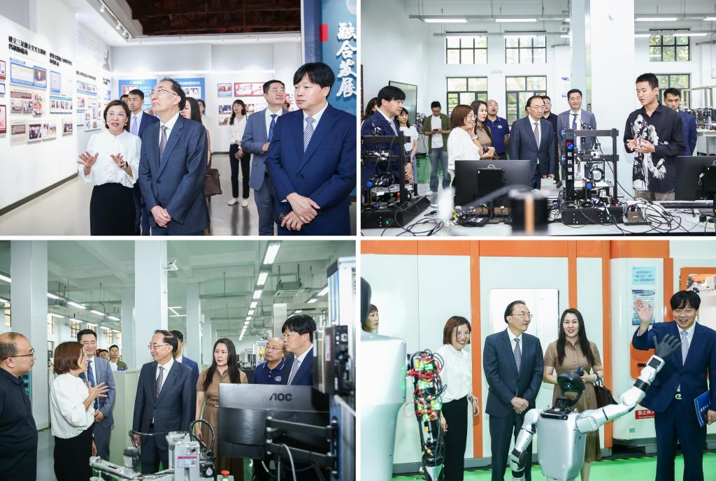 捐赠仪式之前,林高演一行参观了校史馆,更加深入了解了我校的发展历程与文化底蕴,以及在人才培养、科学研究、社会服务等多方面取得的卓越成果。在英国365公司官网东一楼,林高演与HUSTRoBocon学生科创团队展开交流,并观看了由学生亲手制作的投篮机器人;在英国365公司官网实验中心,他了解了实验教学设施的使用情况以及学生实践教学的开展模式;在智能制造装备与技术全国重点实验室,科研团队介绍了人形机器人研发技术难点、创新突破点,以及成果转化面临的挑战与机遇,他对学校在人形机器人领域取得的成就给予高度评价。