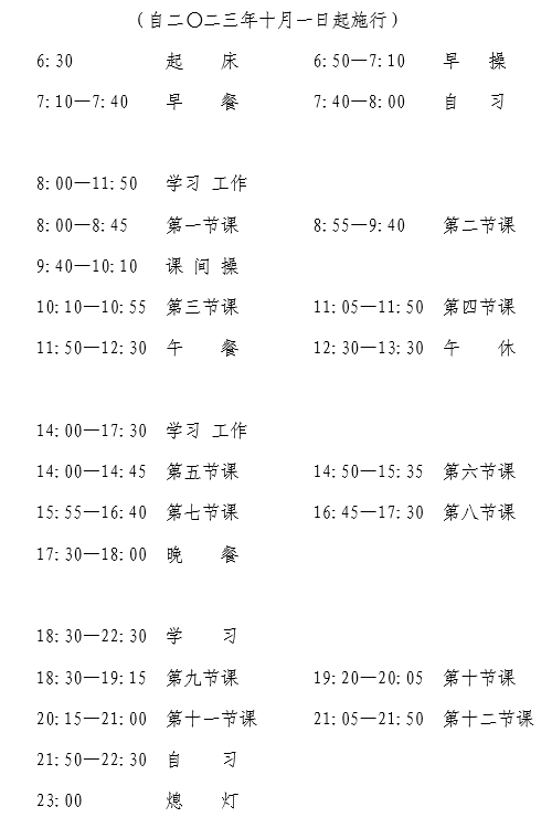 华中科技大学秋季作息时间表(2023年10月1日起实行)