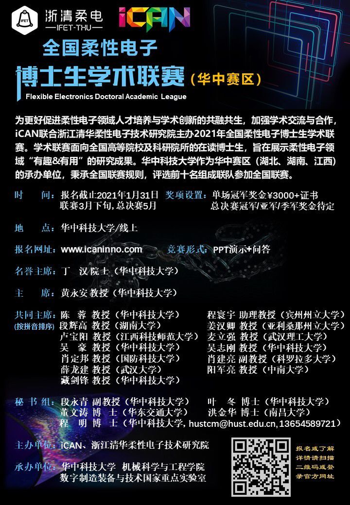 全国柔性电子博士生学术联赛(华中赛区)期待你的参与