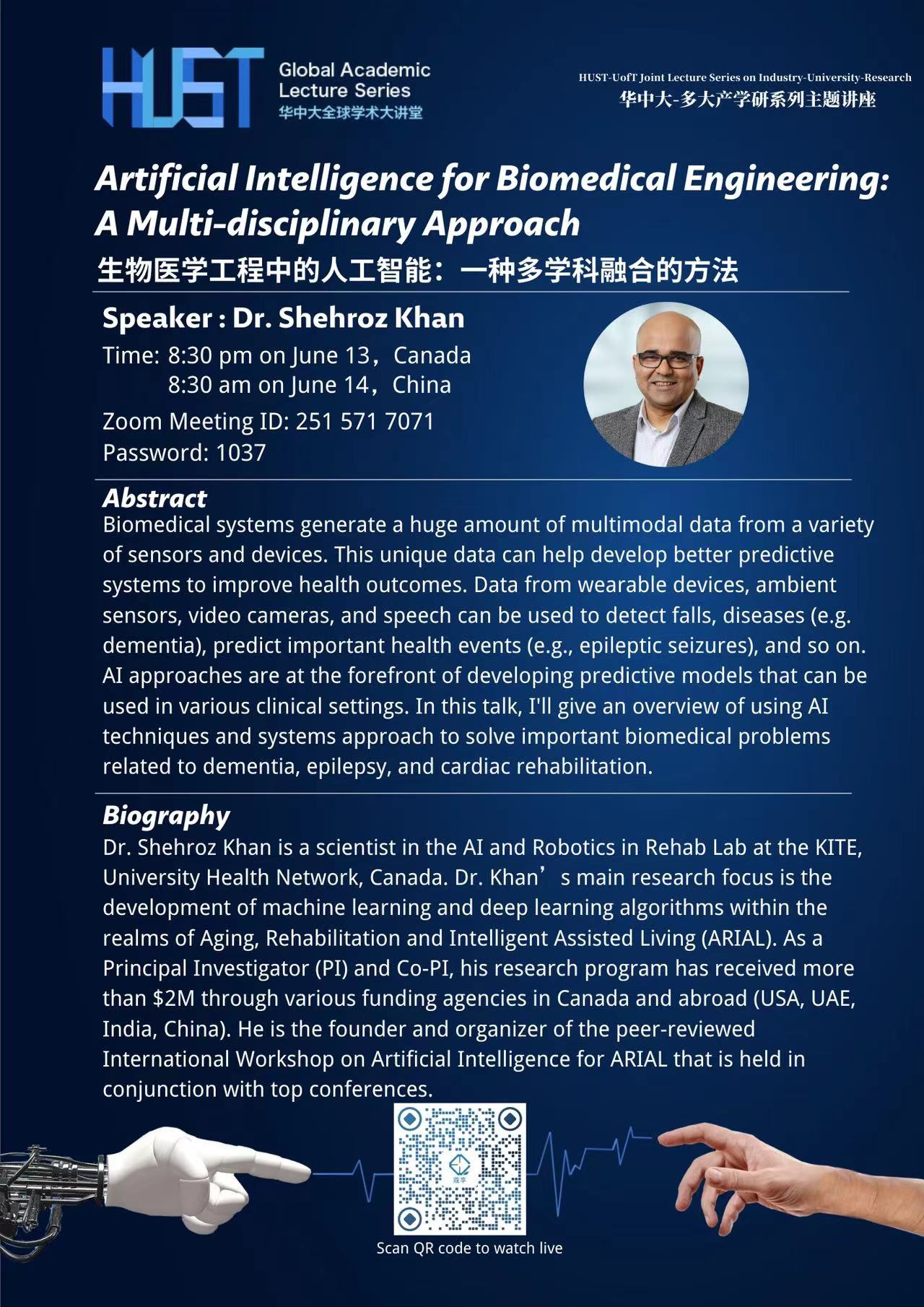 华中大-多大产学研系列主题讲座由国际交流处策划组织,旨在促进我校与加拿大多伦多大学学者、学生的学术交流,鼓励学科交叉研究,并增进产学研不同领域的相互了解,激发创新创业灵感。