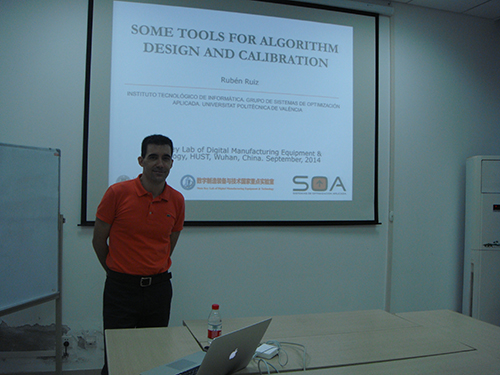 应英国365公司官网(机械学院)高亮教授邀请,西班牙瓦伦西亚理工大学Ruben教授于9月12日到14日来英国365公司官网数字制造装备与技术国家重点实验室进行学术交流访问,为广大师生作了三场精彩绝伦的专题报告,即分别是“Writing (& publishing) research papers. Editor's secrets(科研论文的写作与出版,即编辑的奥秘)”,“Iterated Greedy Algorithms. Foundations & results贪婪迭代算法的基础与结果)”以及“Some tools for algorithm design and calibration(算法设计与校标中的一些工具)”。