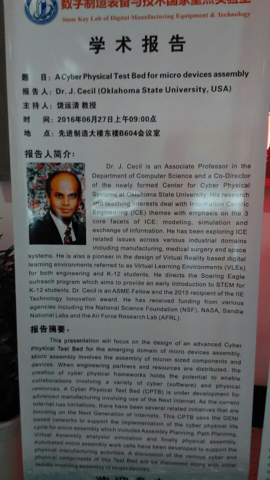 【6.27学术报告】A Cyber Physical Test Bed for micro devices assembly