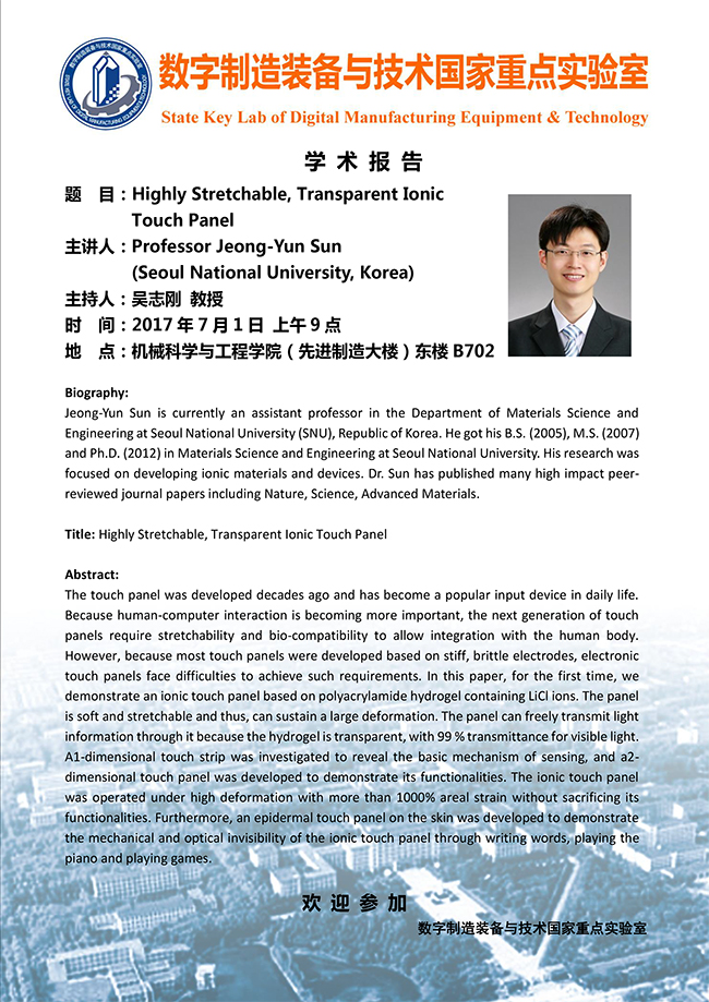 07.01 09:00AM 韩国首尔大学Jeong-Yun Sun教授学术报告