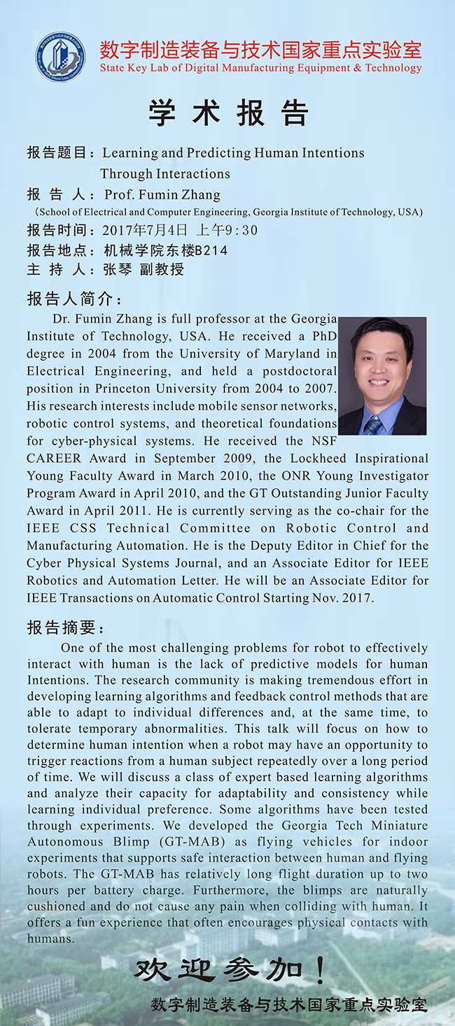 07.04 09:30AM 美国佐治亚理工学院Fumin Zhang教授学术报告