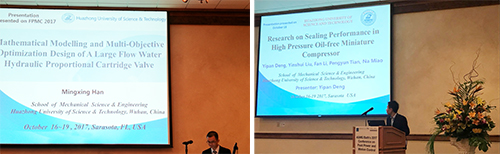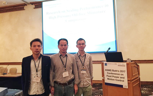 在该会议上,韩明兴做了题为“大流量水压比例插装阀的多目标优化设计与数学建模(Mathematical Modelling and Multi-objective Optimization Design of A Large Flow Water Hydraulic Proportional Cartridge Valve)”的专题报告,邓亦攀做了题为“微型无油润滑高压空压机的密封特性研究(Research on Sealing Performance in High Pressure Oil-free Miniature Air Compressor)”的专题报告。