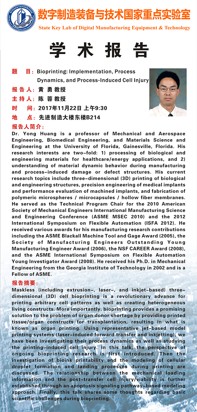 11.22 09:30AM 美国佛罗里达大学黄勇教授学术报告