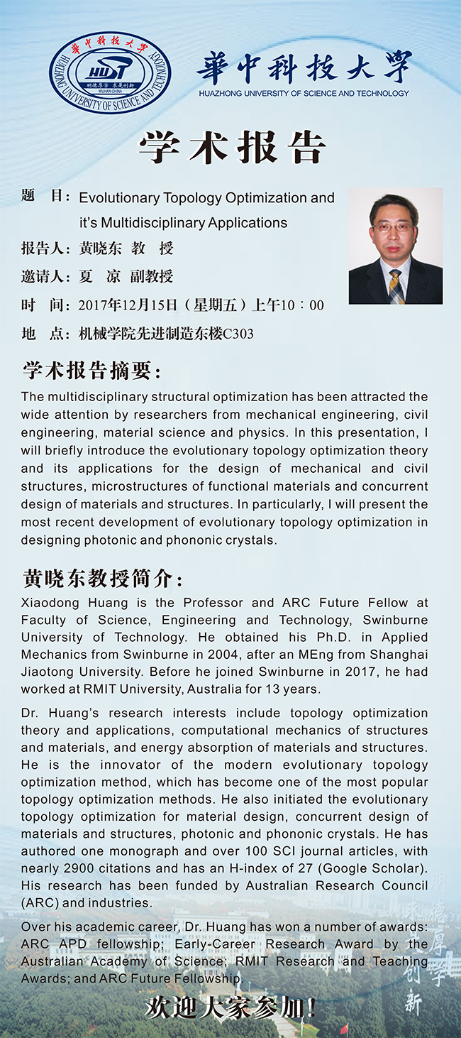 12.15 10:00AM 澳大利亚斯文本科技大学黄晓东教授学术报告