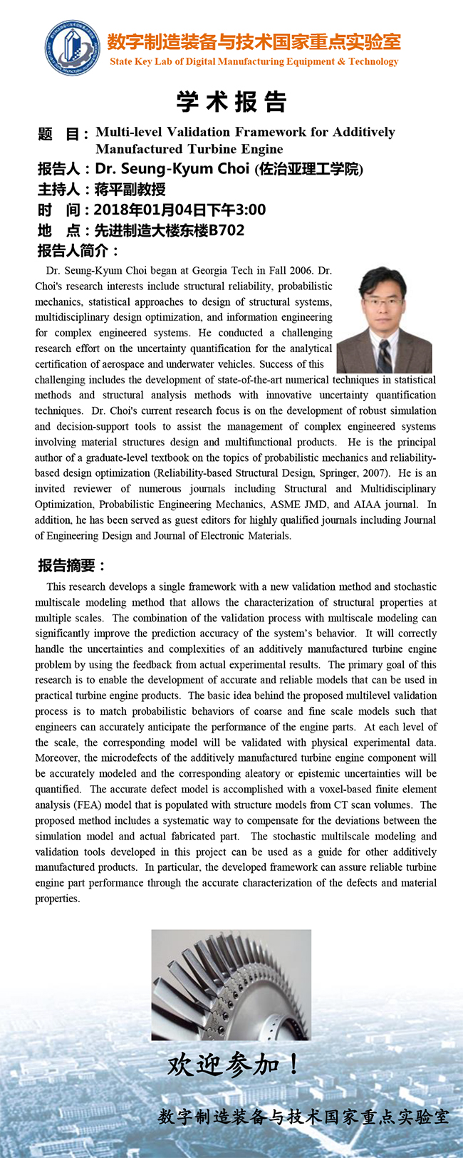 01.04 03:00PM 美国佐治亚理工学院Seung-Kyum Choi博士学术报告