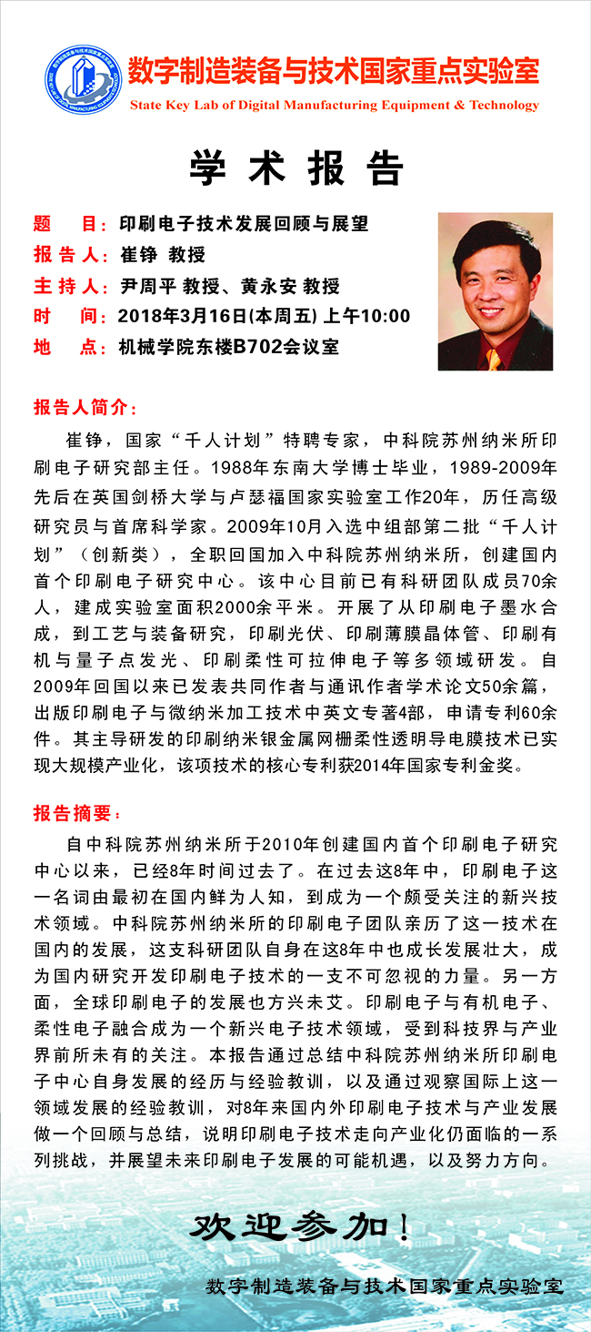 03.16 10:00AM 中科院苏州纳米所崔铮教授学术报告