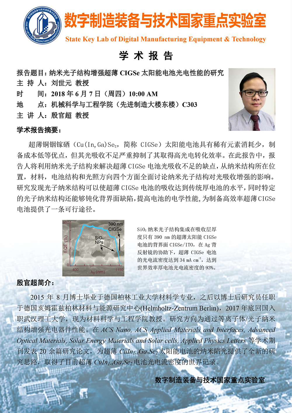 06.07 10:00AM 武汉理工大学殷官超教授学术报告