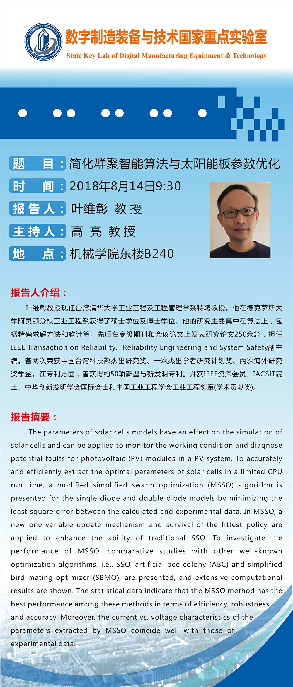 08.14 09:30AM 台湾清华大学特聘教授叶维彰学术报告