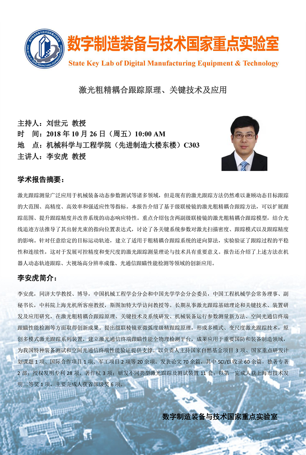 10.26 10:00AM 同济大学李安虎教授学术报告