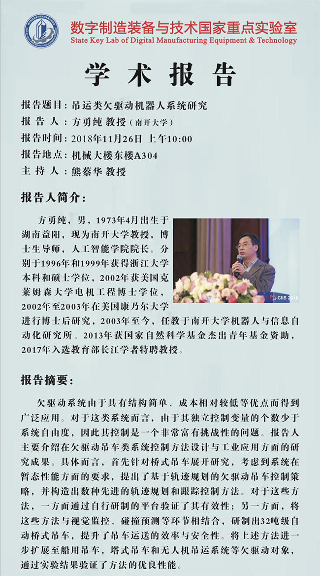 11.26 10:00AM 南开大学方勇纯教授学术报告