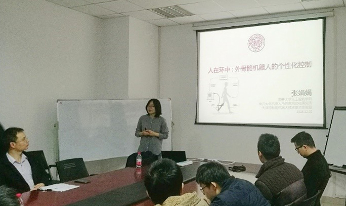 12月2号上午,应英国365公司官网数字制造装备与技术国家重点实验室熊蔡华教授邀请,南开大学人工智能学院副教授张娟娟来英国365公司官网开展学术交流活动。在熊蔡华教授的陪同下,张娟娟副教授参观了机器人与康复医疗装备实验室,随后在先进制造大楼东楼B240作了题为“人在环中:外骨骼机器人的个性化控制”的专题学术报告。