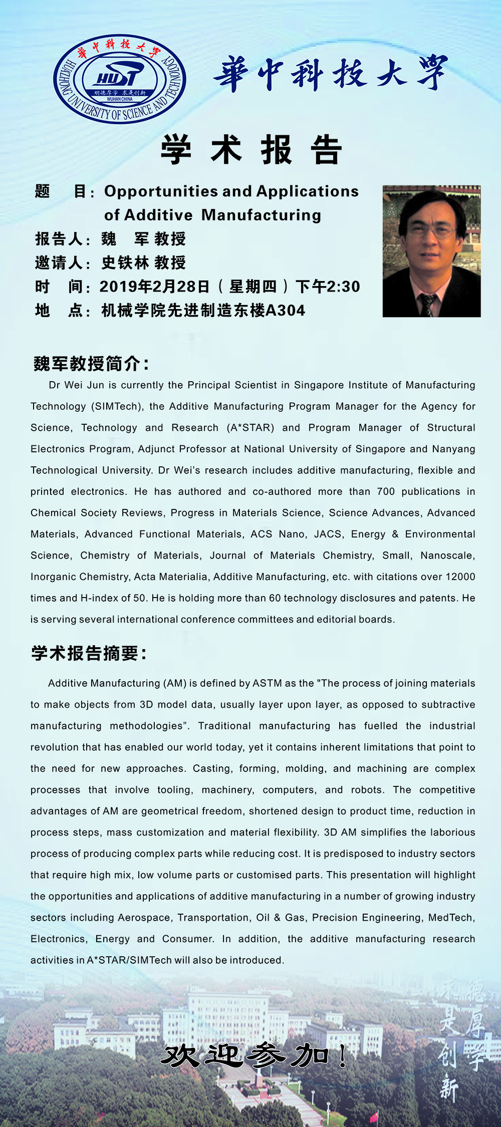 02.28 02:30PM 新加坡科技研究局A*STAR的首席科学家魏军教授学术报告