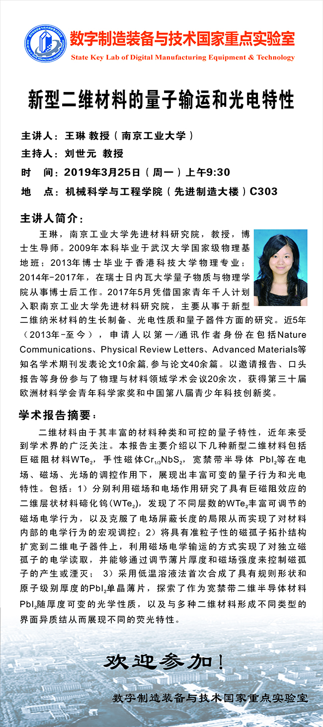 03.25 09:30AM 南京工业大学教授王琳学术报告