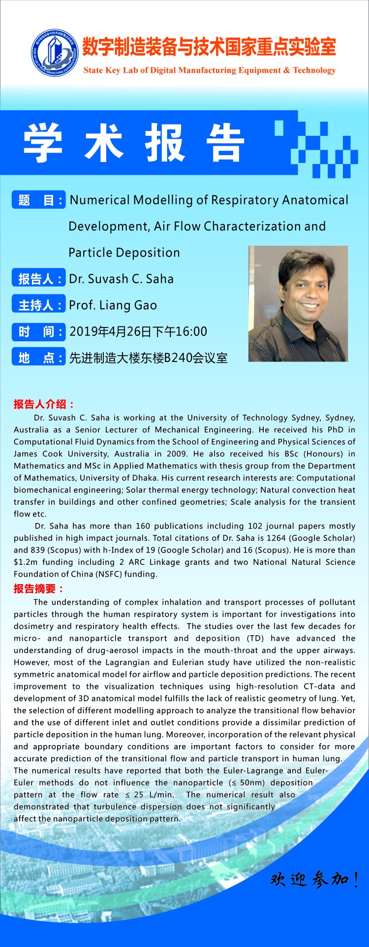04.26 04:00PM 澳大利亚悉尼科技大学博士Suvash C.Saha学术报告