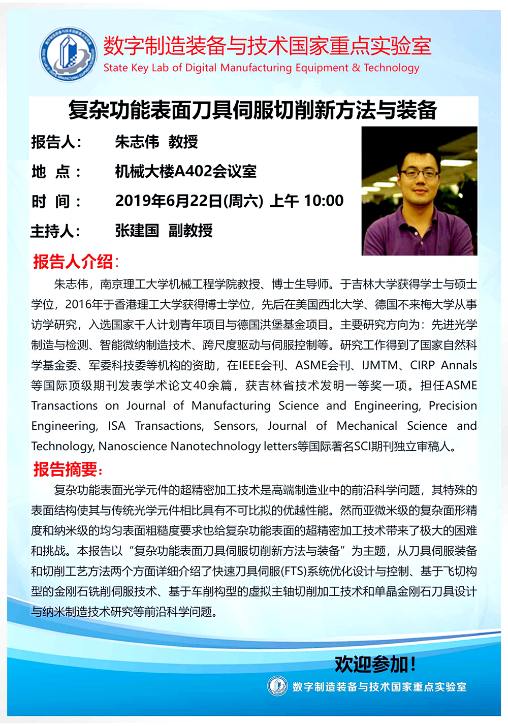 06.22 10:00AM 南京理工大学教授朱志伟学术报告