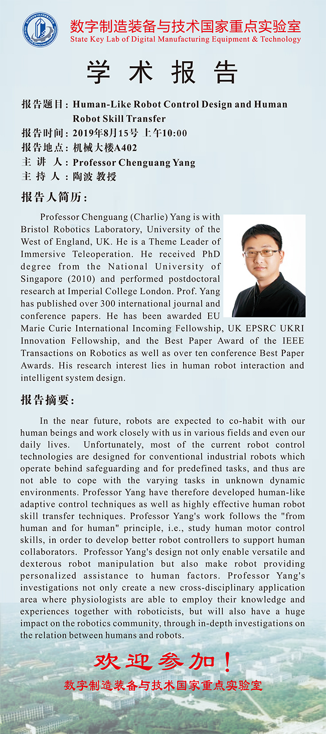 08.15 10:00AM 华南理工大学教授杨辰光学术报告