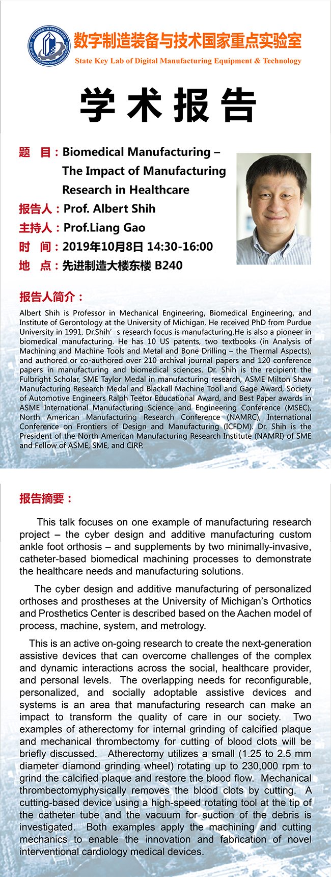 10.08 02:30PM 美国密西根大学教授Albert Shih学术报告