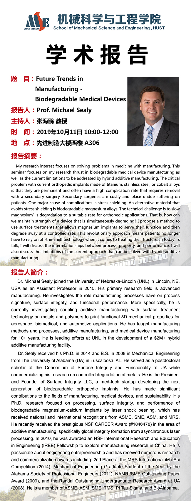 10.11 10:00AM 美国内布拉斯加大学林肯分校Prof.Michael Sealy学术报告