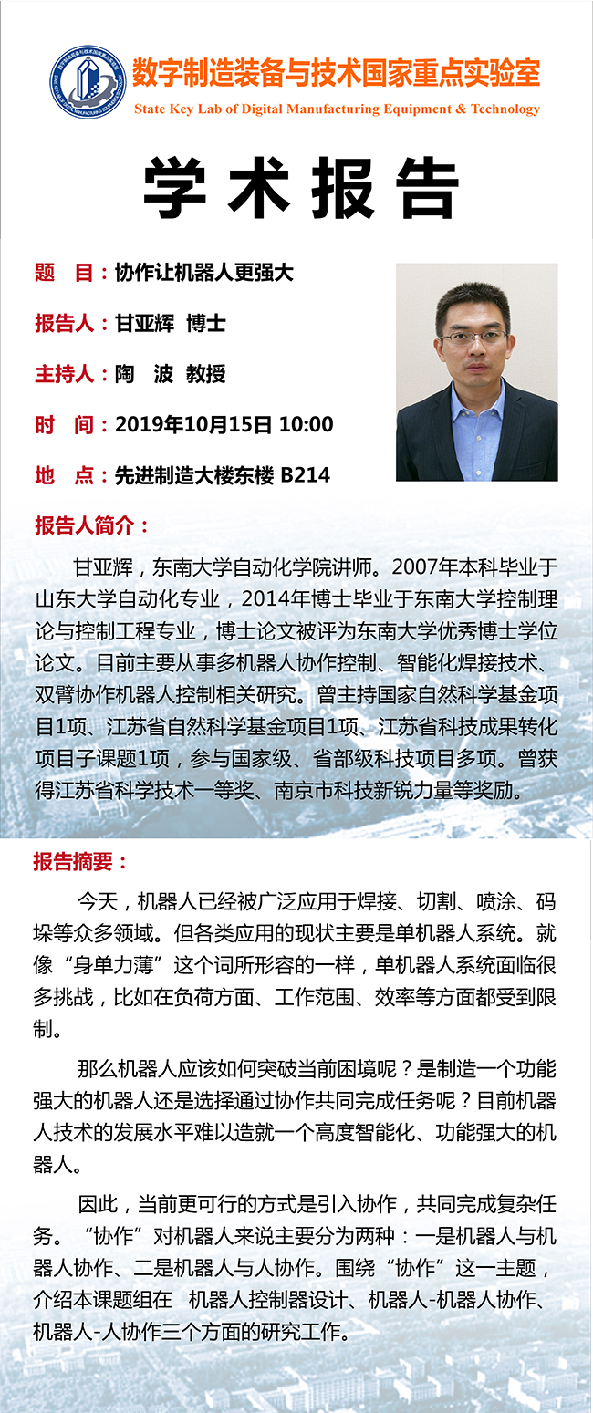 10.15 10:00AM 东南大学甘亚辉博士学术报告
