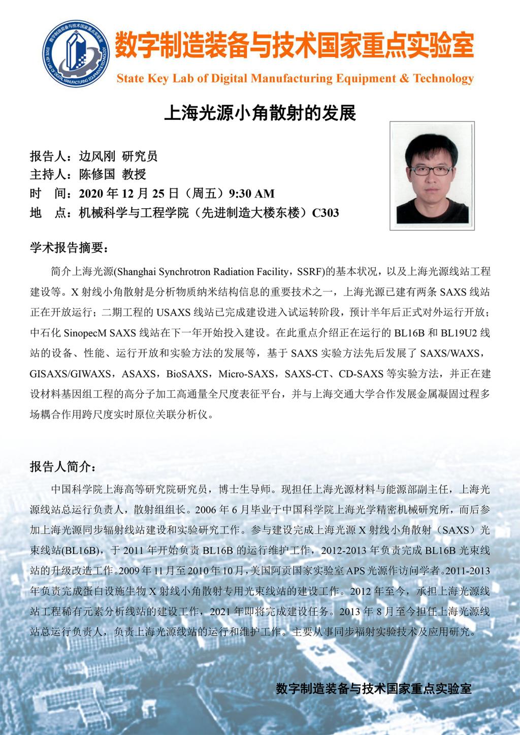 12.25 09:30AM 中国科学院上海高等研究院研究员边风刚学术报告