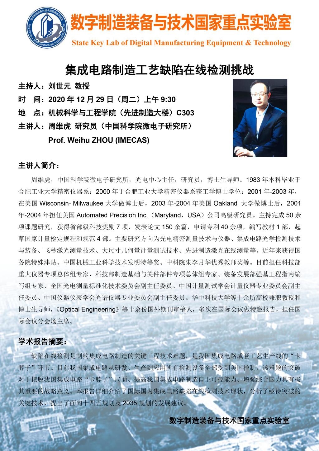 12.29 09:30AM 中国科学院微电子研究所研究员周维虎学术报告